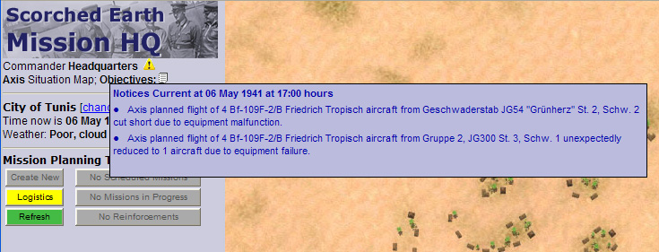 From DCS v3.2.15 onwards, SEOW generates notices for various exceptions encountered during the campaign. These exceptions are normal campaign issues, they are NOT related to failures of the system. If notices are current, commanders will see a yellow icon with an exclamation mark (