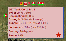 The orange border grows in thickness as the supply level of the unit declines. Here is the unit tooltip for the SU-76 platoon (orange border):