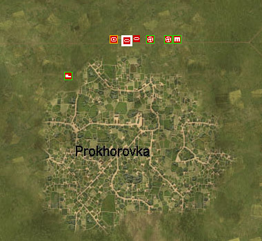 Reading from left to right, we see an armoured train, a SU-76 SP Gun platoon, a T-70 tank platoon, a T-34 tank platoon, two transport columns and an engineers platoon. Most of the icons have coloured borders. These borders signify attributes of the platoons, as follows: