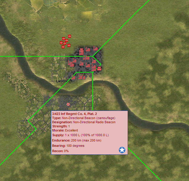 Below is an example of an Allied NDB unit operating in Laroche. TD v4.10 automatically assigns beacon Morse Code IDs at game load time, so there is presently no facility in SEOW to allocate ID codes to beacons.