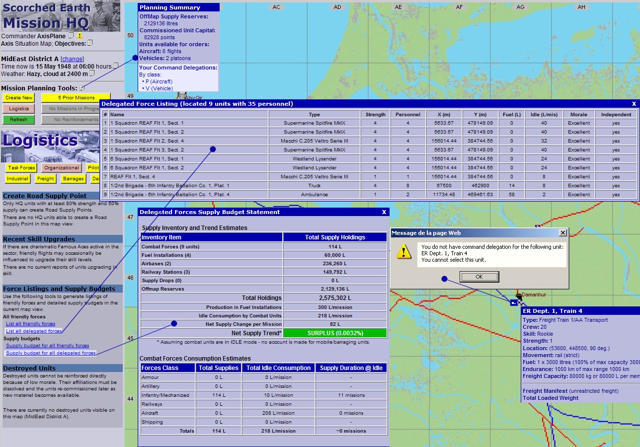Once the Delegation Mode is established in the MP, it remains to set up specific delegation orders for commanders. This is achieved by editing the Commanding field of the PilotData table, for each relevant commander, and inserting appropriate directives. This can be achieved by the admin either by editing the Commanding field directly in the database, or by using the "Commanders" tool under "Manage Campaign" link in the MP.